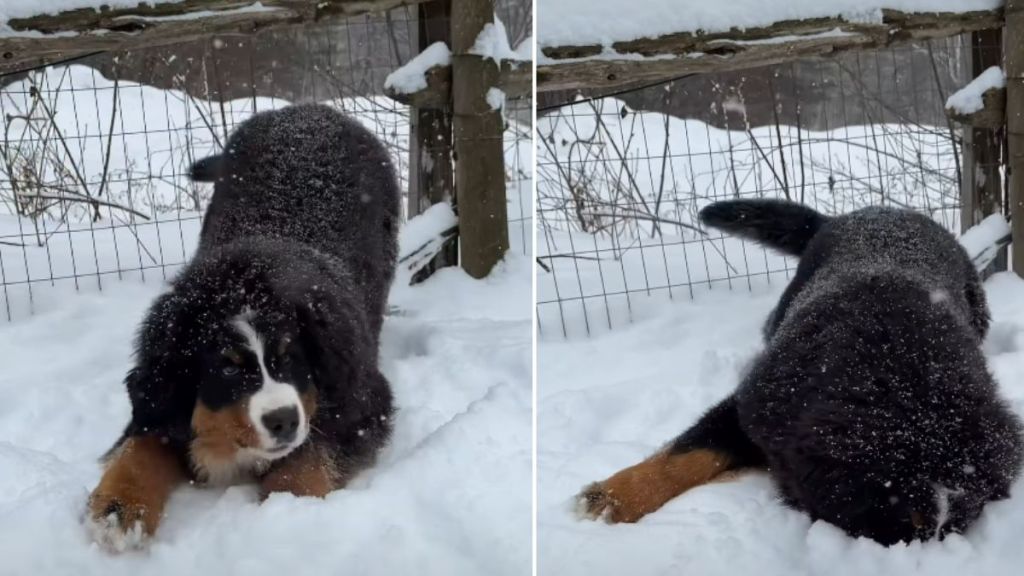 A Bernese Mountain Dog puppy named Kya is charming viewers online as a video shows her embracing winter as her favorite season, bounding excitedly through fresh snow in a white-covered landscape, her fluffy coat standing out against the icy backdrop.