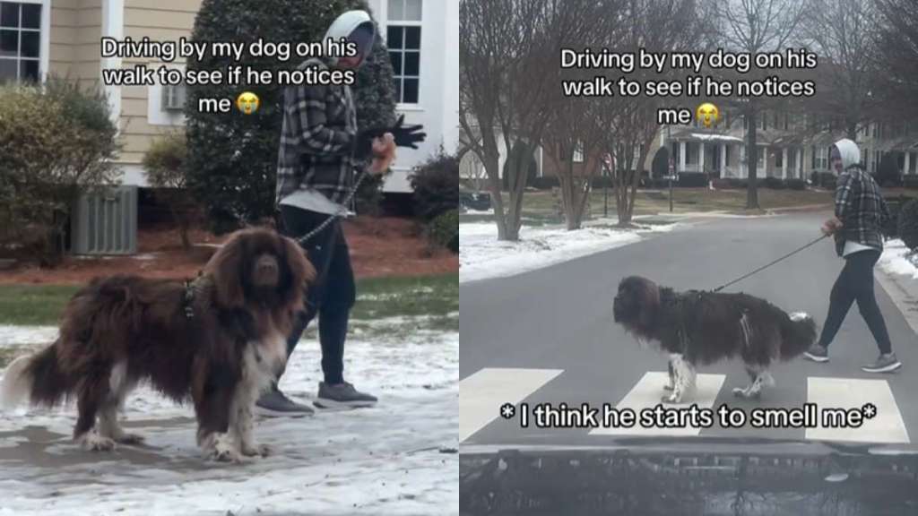 An Instagram Reel shared by @chewythenewfoundland shows Chewy, a fluffy Newfoundland, experiencing a moment of recognition that quickly turns emotional. In the video, the dog is out for a walk with his dad, calmly strolling along and seemingly focused on the path ahead. Meanwhile, his mom drives past in a car, curious to see whether her pup will notice her at all.
