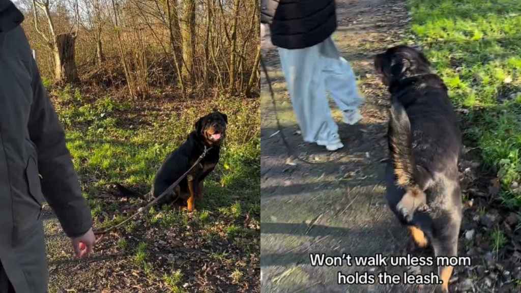 The text written over the clip read, “Won’t walk unless mom holds the leash.” As the video went on, viewers could also see the “spare human” trying his best to make the dog move and start walking.
