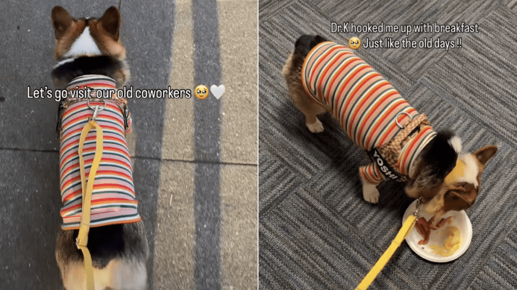 This Thursday could have been a monotonous day for this Corgi. However, his mom decided to take him to meet her co-workers, which made his day much brighter. After all, who doesn’t like meeting their old friends? The video was shared by @yoshi.and.oso_ on Instagram. It shows the dog walking happily in a cute outfit, ready to meet his mom’s former co-workers.